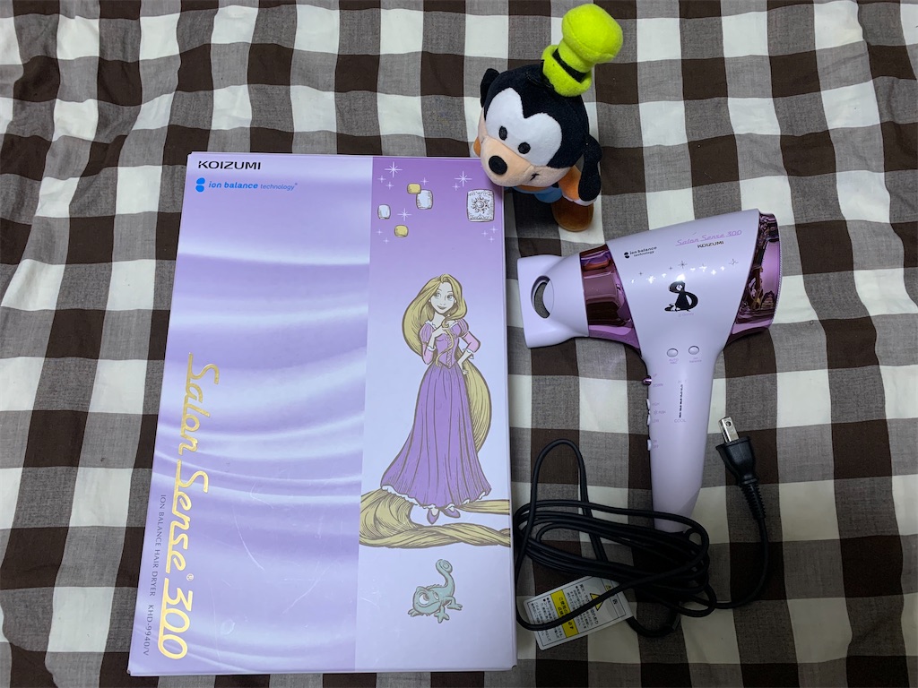 私はデザインが可愛らしいので『ラプンツェル ヘアドライヤー イオンバランスドライヤー Salon Sense 300 』を購入しましたが、髪にうるおいを届けるイオンバランステクノロジー搭載のヘアドライヤーなんです。